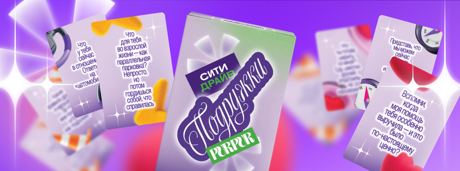 Иногда лучший план — написать подруге: «Поехали, поговорим», сесть в машину и просто провести время вместе. Чтобы оно было и весёлым, и осмысленным, мы выпустили карточную игру с вопросами для подруг. Она помогает говорить о важном, смеяться и узнавать друг друга лучше.